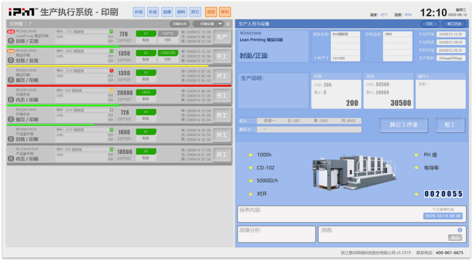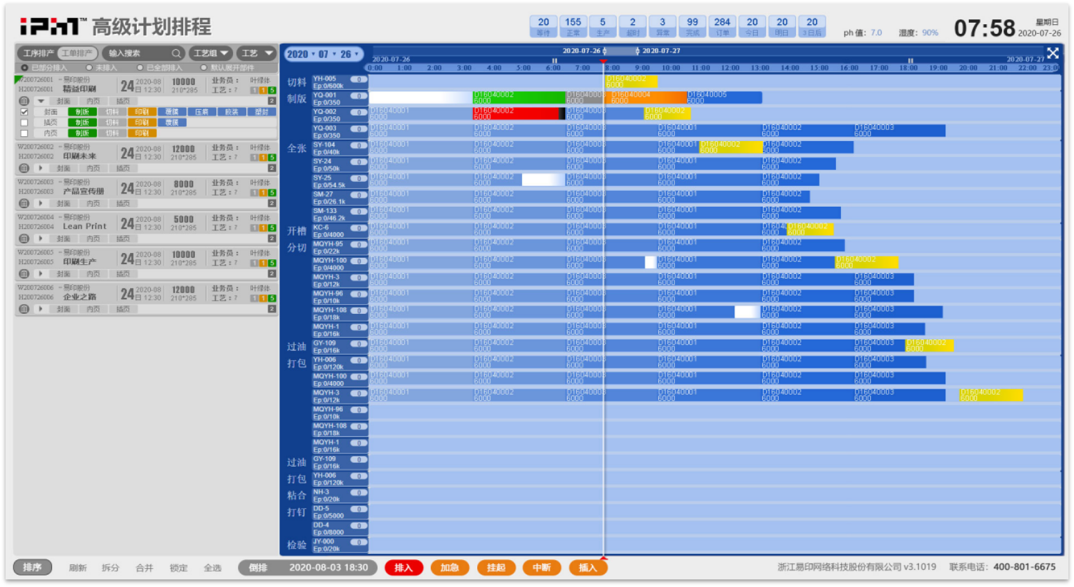采用全新圖形化界面設(shè)計(jì),界面與操作簡(jiǎn)單友好,大幅度降低實(shí)施難度。可連接ERP系統(tǒng),可用訂單工單與倉(cāng)儲(chǔ)模塊,實(shí)時(shí)監(jiān)控庫(kù)存原輔料領(lǐng)用狀態(tài),下可對(duì)接設(shè)備實(shí)時(shí)數(shù)據(jù)交互,自動(dòng)生成最佳印企有限產(chǎn)能下的最佳生產(chǎn)規(guī)劃,同時(shí)實(shí)時(shí)反饋生產(chǎn)異常情況,計(jì)劃動(dòng)態(tài)糾偏,助力印企實(shí)現(xiàn)精益生產(chǎn)、走向智能制造!