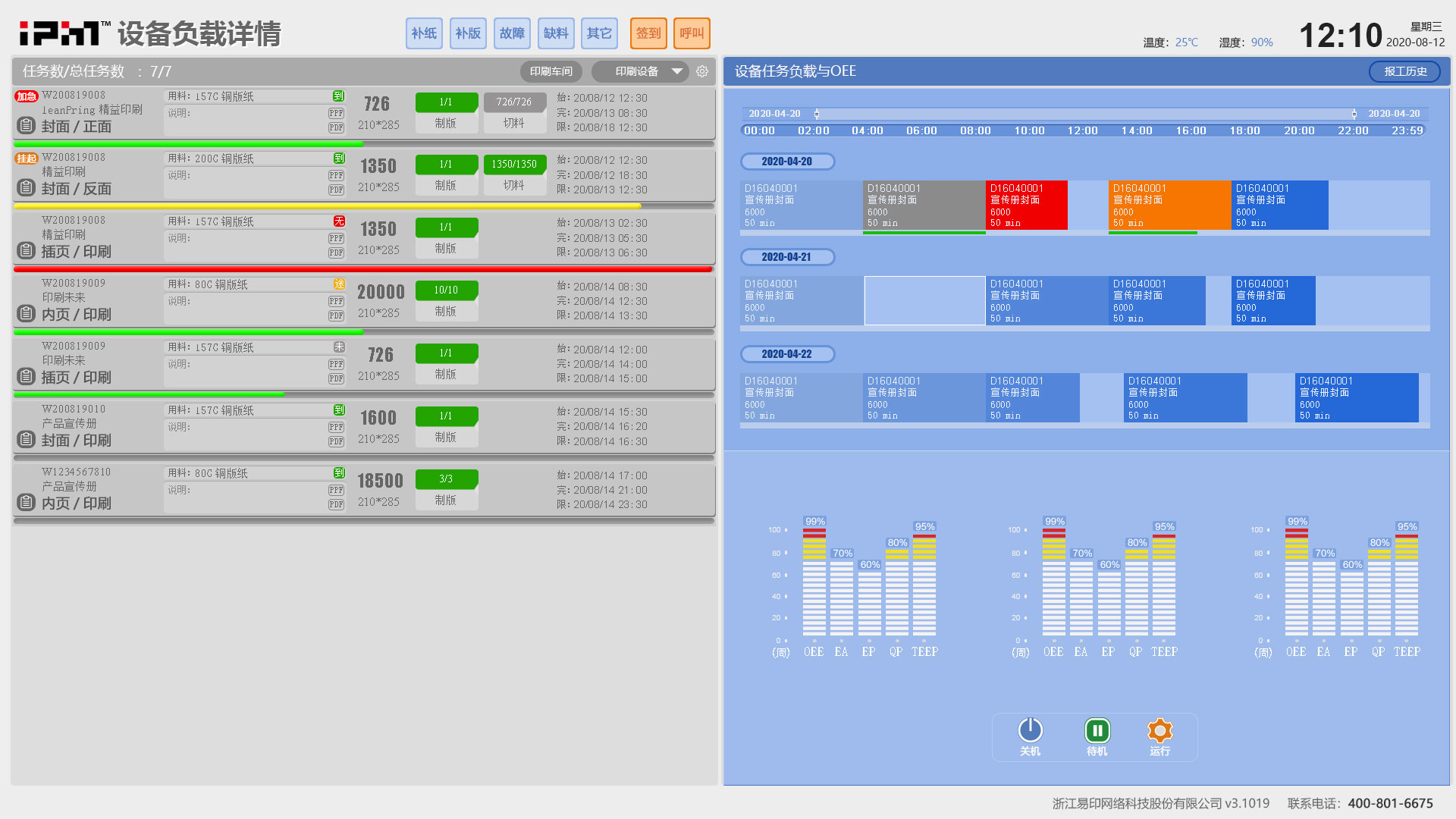 印能捷APS+MES系統(tǒng)——設(shè)備負(fù)載及OEE顯示